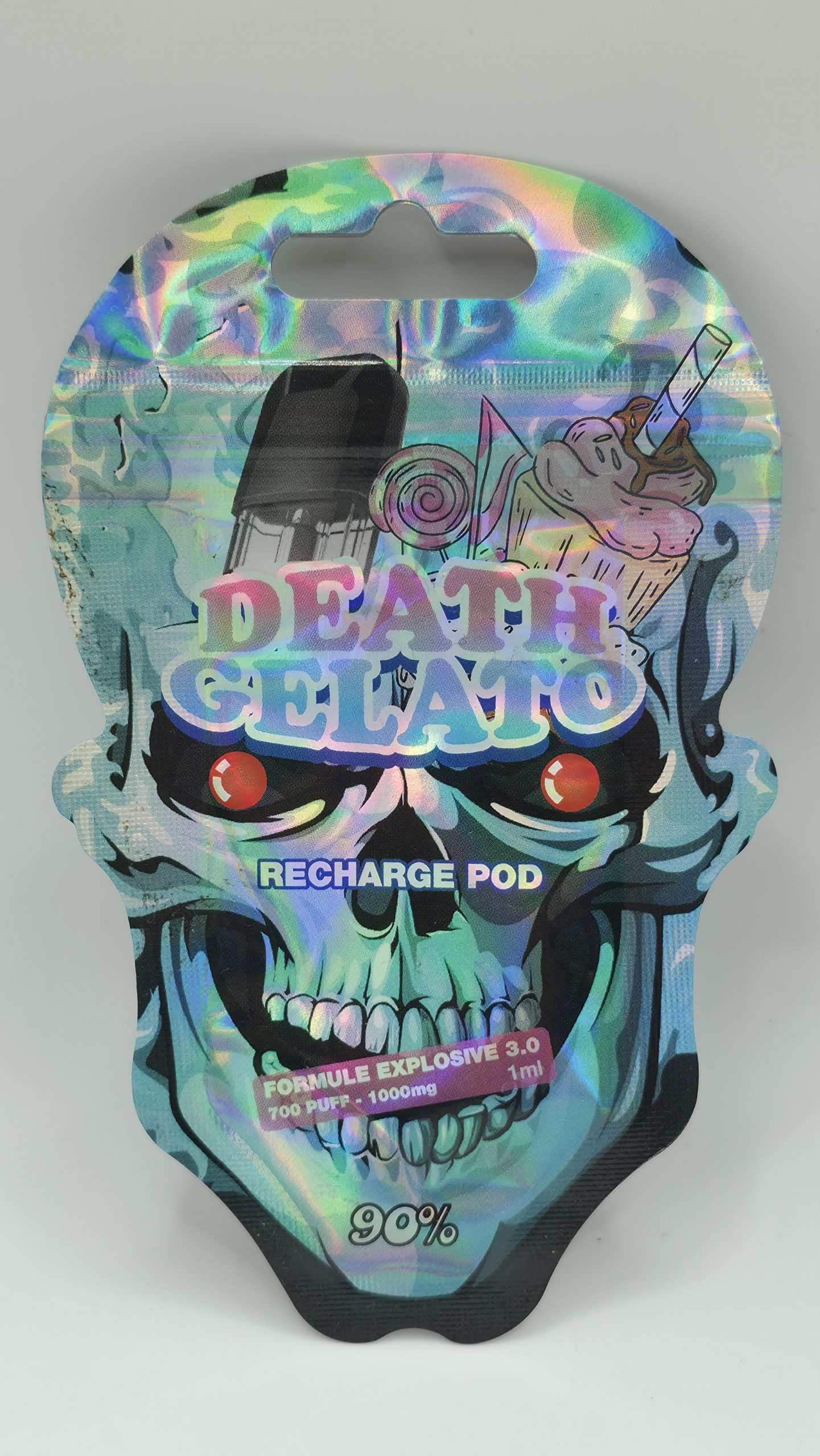 - Le pod Skull Vape – Gelato incarne l’élégance fruitée 🍓🍇 alliée à une efficacité raffinée. Cette déclinaison, parmi les plus appréciées de la gamme, conjugue puissance contrôlée 💨 et profil gustatif sophistiqué 😋. Avec un taux exceptionnel de 90 % en cannabinoïdes (CSA, CBD, CBN, CBG, CBC), ce pod promet une union parfaite entre relaxation profonde