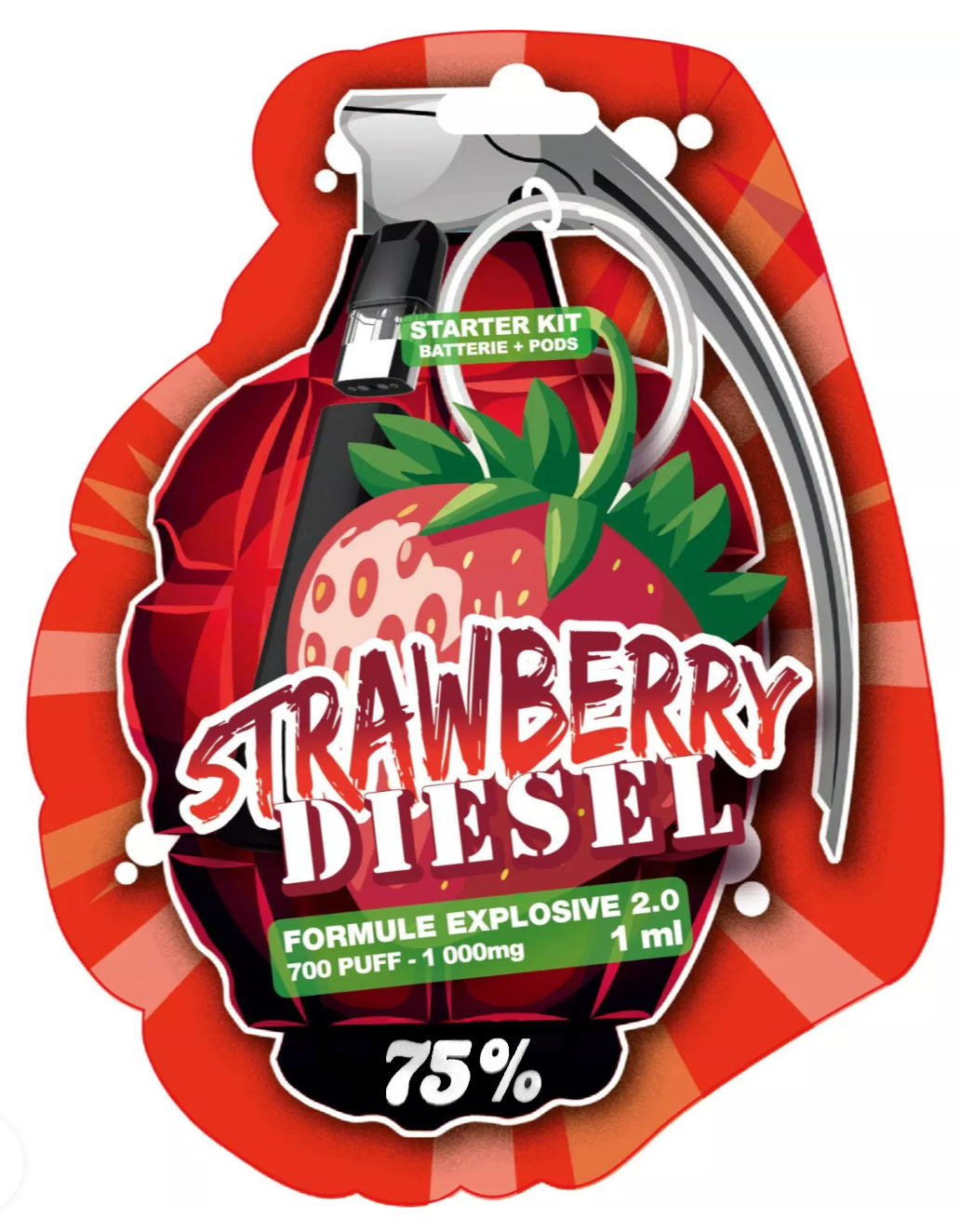 • Saveur unique “Strawberry Diesel” : une alliance audacieuse entre la gourmandise de la fraise et la robustesse du diesel, pour un hit à la fois fruité et affirmé